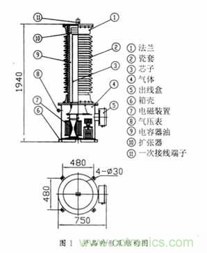 本電容式電壓互感器采用一種新型的絕緣結(jié)構(gòu),即電磁裝置為干式結(jié)構(gòu)。