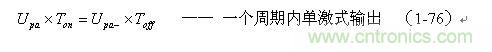 (1-76)式就是計(jì)算單激式變壓器開關(guān)電源輸出電壓的表達(dá)式。式中,Upa和Upa-分別稱為單激式變壓器開關(guān)電源輸出電壓的正半波平均值和負(fù)半波平均值。