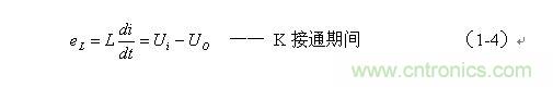 ;在K關(guān)斷期間,流過儲(chǔ)能電感L的電流上升率為: