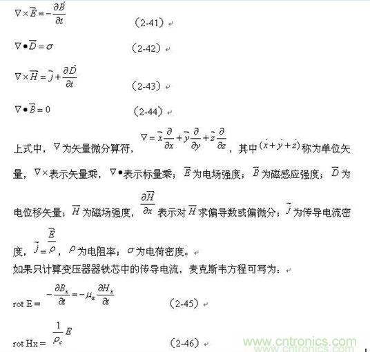 沿鐵芯片截面的磁場(chǎng)分布,可以用麥克斯韋的方程式來(lái)求得;麥克斯韋的微分方程式為: