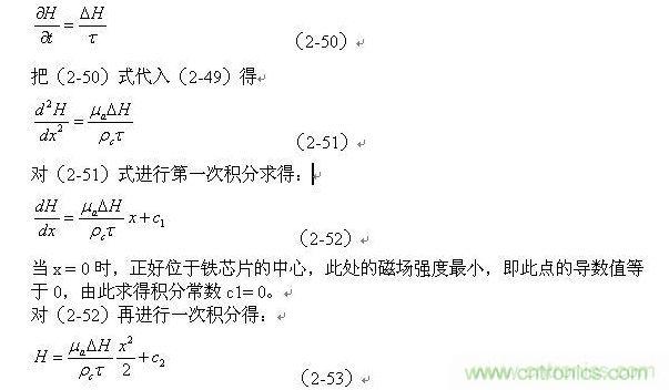 (2-48)式進(jìn)行微分,然后代入(2-47)式,即可求得磁場(chǎng)強(qiáng)度的一維分布方程為: