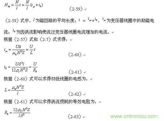 圖2-21-a就是根據(jù)(2-62)、(2-63)式畫出的開(kāi)關(guān)變壓器受渦流影響時(shí),輸入端磁化過(guò)程的等效電路圖。