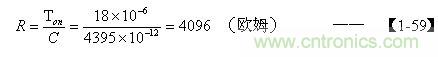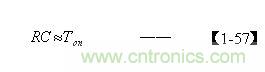 把由【1-52】和(2-73)式求出電容器C的結果,以及根據(jù)【1-25】式求出的Ton值,代入【1-57】式后即可求出電阻R的值。