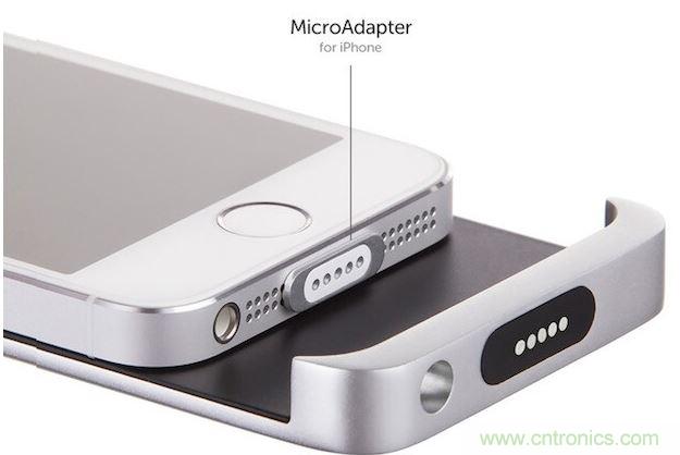 使用像MagSafe 一樣的連接線時(shí),事先將被稱為MicroAdapter的小型配適器插入iPhone的Lightning端口。為了使充電用的Lightning連接線可以實(shí)現(xiàn)正常充電,通過(guò)使用配有MagAdapter的磁石連接口來(lái)連接實(shí)現(xiàn)充電。這是原創(chuàng)設(shè)計(jì)所以不能說(shuō)該產(chǎn)品使用了便攜式MacBook的充電連接線。