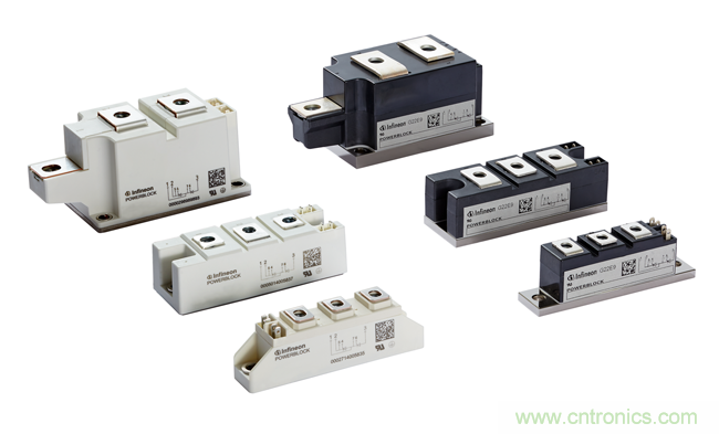 新型PowerBlock模塊提供的封裝底板寬度為20mm、34mm 或 50mm。每種封裝均提供五種方便整流器設(shè)計(2種晶閘管/晶閘管TT、2種晶閘管/二極管TD和1種二極管/二極管DD)的模塊。英飛凌提供的產(chǎn)品涵蓋主要電流額定值的每種尺寸,所有型號均提供1600V阻斷電壓。英飛凌是歐洲唯一一家可提供滿足不同應(yīng)用需求的20 mm、34 mm和50 mm模塊的供應(yīng)商;在此類模塊中,采用焊接技術(shù)的模塊是針對成本優(yōu)化的工業(yè)標(biāo)準(zhǔn)解決方案,而采用壓力接觸技術(shù)的模塊則是為滿足高電流應(yīng)用和高可靠性的需求。