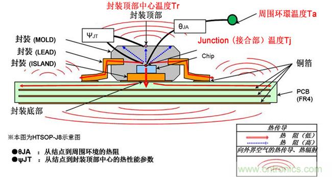 通常,只要知道PCB板貼裝時IC的熱阻θJA和功耗,或封裝頂部中心溫度TT熱性能參數(shù)ΨJT,即可知道IC大致的結(jié)點(接合部)溫度Tj。如何將該結(jié)點溫度Tj控制在絕對最大額定值以下是熱設(shè)計的根本。