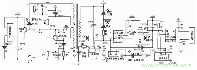 本文設(shè)計(jì)中采用16 個(gè)光伏電池串聯(lián),組成電壓約為1218V 的太陽(yáng)能組件,通過(guò)采集較高多的光能,保證日照能夠使鋰電池完全充滿電。供電網(wǎng)絡(luò)設(shè)計(jì)電路采用正激式拓?fù)浣Y(jié)構(gòu)[ 1 ] 。具體電路如圖2 所示。