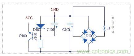 如圖3,當感應線圈靠近發(fā)射線圈時,就會產(chǎn)生感應電流,經(jīng)過全波整流后,根據(jù)不同的電子產(chǎn)品的充電電壓,可選擇不同的穩(wěn)壓二極管穩(wěn)壓,再經(jīng)三極管Q100放大電流后供給不同電子產(chǎn)品充電。