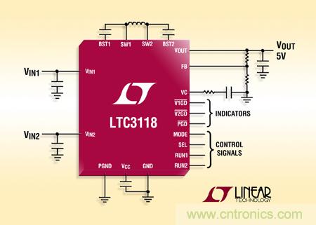 【導讀】昨日,凌力爾特公司宣布推出雙輸入、寬電壓范圍同步降壓的升壓型 DC/DC 轉換器 LTC3118,該轉換器具雙輸入電源通路控制的 18V、2A 同步降壓-升壓型DC/DC 轉換器允許多個輸入和延長的運行時間。LTC3118集成低噪聲、低損耗以及高效率等優(yōu)點。