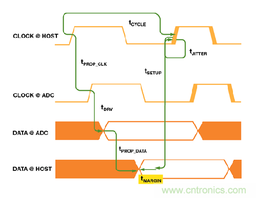 tPROP_CLK: 從主機到ADC 的傳輸線路的數(shù)據(jù)傳播延遲