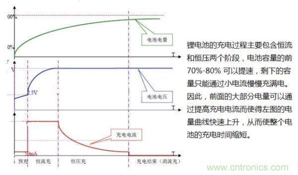 隨著對(duì)鋰電池容量的要求越來(lái)越高,鋰電池廠家也在加快新型電池的研發(fā),額定充電電壓從傳統(tǒng)的4.2V提高到4.35V,目前又出現(xiàn)了4.4V充電電壓的鋰電池,容量進(jìn)一步提高。而傳統(tǒng)的充電器輸出電壓為5V,充電控制電路會(huì)調(diào)節(jié)充電電壓和電流滿足鋰電池的充電特性。不同鋰電池的化學(xué)特性不同,因此充放電性能及安全性能也就不同,有的電池芯適合大電流充放電,而有些電池芯可以耐高電壓,所以,采用何種快速充電方式要取決于鋰電池芯的具體特性。提高充電器的輸出電壓可以在恒流階段提高充電功率,實(shí)現(xiàn)快速充電。