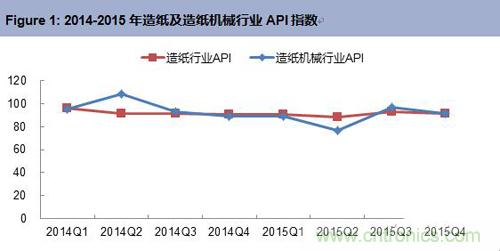 自動(dòng)化產(chǎn)品在造紙及造紙機(jī)械行業(yè)的應(yīng)用十分廣泛,主要的產(chǎn)品類型有傳動(dòng)系統(tǒng)、控制系統(tǒng)、執(zhí)行機(jī)構(gòu)和過程控制儀表等。2015年四季度造紙行業(yè)自動(dòng)化產(chǎn)品市場規(guī)模為2.32億元,同比下滑8.5%;造紙機(jī)械行業(yè)自動(dòng)化產(chǎn)品市場規(guī)模為0.41億元,同比下滑8.4%。行業(yè)API指數(shù)均小于100。受整體經(jīng)濟(jì)環(huán)境低迷、產(chǎn)能過剩矛盾、資源整合、行業(yè)結(jié)構(gòu)調(diào)整等因素影響,且隨著“新環(huán)保法”、“水十條”等環(huán)保新政的出臺(tái)和實(shí)施,造紙行業(yè)新建和改造項(xiàng)目減少,從而使造紙及造紙機(jī)械行業(yè)自動(dòng)化產(chǎn)品市場規(guī)模萎縮。