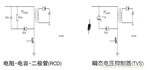 圖3. 兩種常見(jiàn)的尖峰吸收電路