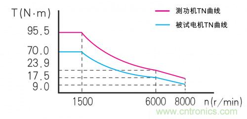 而要模擬被試電機的實際運行工況,那測功機的加載能力,必須覆蓋被測電機的全部工況范圍,那才能滿足模擬“所有工況”的要求。簡單來說,就是測功機的機械負載的TN曲線,必須覆蓋被試電機的TN曲線,這樣才能把被試電機的全程TN特性測試出來。