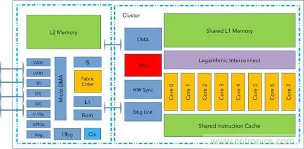 GAP8處理器來自義大利波隆納大學(xué)(Universities of Bologna)與瑞士蘇黎世聯(lián)邦理工學(xué)院(ETF Zurich)開發(fā)的RISC-V開放源碼硬體PULP核心技術(shù)轉(zhuǎn)移。GAP8采用8顆PULP核心以及1個TensorFlow處理器元(TPU),為基于硬體的模式匹配應(yīng)用加速卷積神經(jīng)網(wǎng)路。
