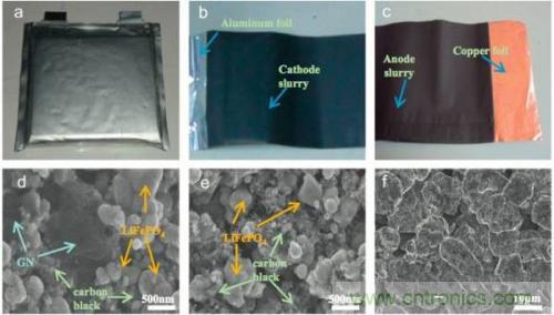 實(shí)驗(yàn)中楊全紅的團(tuán)隊(duì)制作了兩種電池,一種是普通的對(duì)照組電池,使用了7%的炭黑和3%的導(dǎo)電石墨,實(shí)驗(yàn)組則使用1%的石墨烯和1%炭黑作為導(dǎo)電劑。試驗(yàn)結(jié)果顯示,在相同的涂布量的前提下,使用石墨烯的實(shí)驗(yàn)組電池容量(0.5C充放電)要明顯高于對(duì)照組電池,并且兩者的循環(huán)性能接近,表明石墨烯能夠搭建起更為高效的導(dǎo)電網(wǎng)絡(luò),從而減少導(dǎo)電劑的用量,提高鋰離子電池的容量(10%),降低電池的極化,提升電池的能量密度。