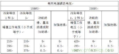 1、根據(jù)交流電網(wǎng)電壓有效值和過電壓類別確認交流電網(wǎng)電源瞬態(tài)電壓(由附錄Z和表2J確定);