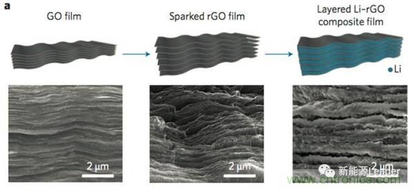 金屬鋰的另一大問題就是體積變化大,導致界面波動大,容易破壞界面結(jié)構(gòu),目前比較好的解決辦法主要有氧化石墨烯載體(如下圖所示),誘導沉積等方法,利用載體內(nèi)部的空間儲存金屬鋰,從而最大限度的減少在充放電過程中電極的體積變化「1」。