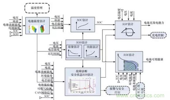 (2)電池狀態(tài)估計。包括荷電狀態(tài)(SOC)或放電深度(DOD)、健康狀態(tài)(SOH)、功能狀態(tài)(SOF)、能量狀態(tài)(SOE)、故障及安全狀態(tài)(SOS)等;
