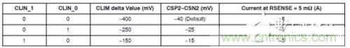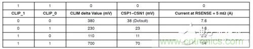 表2:5 m檢測電阻對應(yīng)的峰值過流保護(hù)值(反向過流保護(hù))