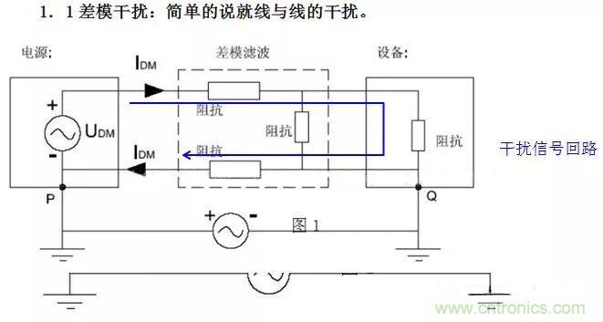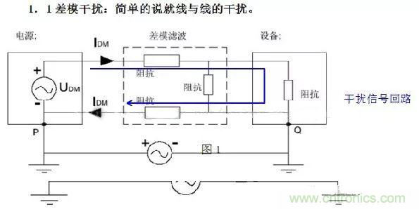 2.差模干擾(Differential-mode Interference):兩導(dǎo)線上的干擾電流,振幅相等,方向相反稱為差模干擾。(任何兩個(gè)載流體之間不希望有的電位差)
