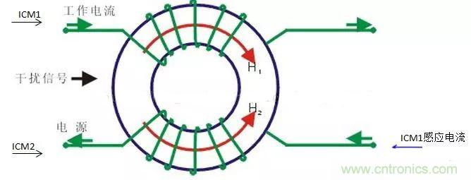 當(dāng)電路中的正常電流通過(guò)時(shí),電流在同相位繞制的電感線圈中產(chǎn)生反向的磁場(chǎng)而相互抵消,此時(shí)正常信號(hào)電流主要受線圈電阻的影響(和少量因漏感造成的阻尼);當(dāng)共模電流流過(guò)線圈時(shí),由于共模電流的同向性,會(huì)在線圈類產(chǎn)生同向的磁場(chǎng)而增大線圈的阻抗,使線圈表現(xiàn)為高阻抗,產(chǎn)生較強(qiáng)的阻尼效果,以此衰減共模電流達(dá)到濾波的目的。