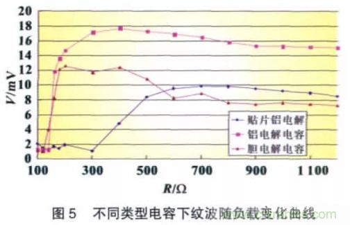 2.2.2 π 型CLC 濾波電路中不同類型電解電容下紋波隨負(fù)載的變化