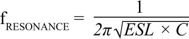 電容自諧振頻率就是電容電抗(1/ωC)等于ESL電抗(ωESL)時(shí)的頻率。對這一諧振頻率等式求解得到下式: