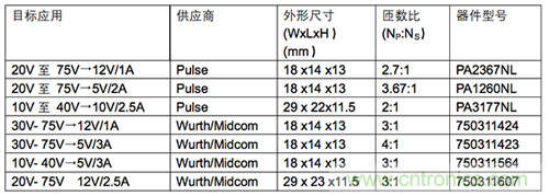 凌力爾特公司與主要的磁性元件制造商進行了合作,以生產(chǎn)供 LT3748使用的預(yù)設(shè)計型反激式變壓器。表 1是一張縮略表,羅列了一些推薦使用的市售變壓器,制造商為 Wurth Electronics和 Pulse Engineering 公司。完整列表請見 LT3748 的產(chǎn)品手冊。這些變壓器一般能夠承受 1,500VAC 的主端至副端擊穿電壓(持續(xù)時間為一分鐘)。也可以使用擊穿電壓更高的變壓器和定制變壓器。