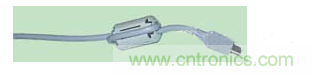 將一個(gè)鐵氧體磁環(huán)套在導(dǎo)線或電纜上就構(gòu)成了一介簡(jiǎn)單、經(jīng)濟(jì)、便于安裝的濾波器,如圖4所示。鐵氧體的作用是將導(dǎo)線周圍的磁場(chǎng)集中起來,從而使導(dǎo)線的電感增加數(shù)百倍。鐵氧體扼流圈的最大好處是它既不需要重新設(shè)計(jì)電路,也不需要重新設(shè)計(jì)結(jié)構(gòu),因此在設(shè)備的改進(jìn)中廣泛應(yīng)用。生產(chǎn)廠家提供需多種不同內(nèi)徑規(guī)格的分體式鐵氧體,一般內(nèi)徑從5mm~13mm不等。當(dāng)信號(hào)線和回流線同時(shí)穿過鐵氧體時(shí),鐵氧體對(duì)信號(hào)(差