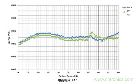 許多因素都會影響系統(tǒng)精度,包括溫度漂移、電壓漂移和偏移電壓。電池測試儀參考設(shè)計使用三點校準來計算不同的影響來源或任何錯誤。圖2顯示了在寬電流范圍內(nèi)實現(xiàn)的滿量程精度。該系統(tǒng)在電池充電時以降壓模式運行,放電時以升壓模式運行。