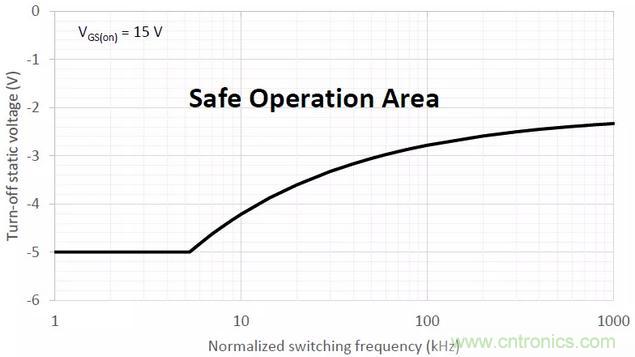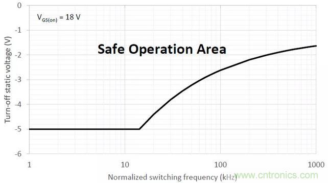 通過控制門極負壓Vgs(off),Vth漂移可以被限制在一個可接受的水平內(nèi)。不論什么情況下,關斷電壓的上限都是0V,同時,關斷電壓的下限需要根據(jù)開通電壓、開關頻率、以及操作時間來選擇一個合適的值,使Rds(on)的增加限制在一定范圍之內(nèi)。