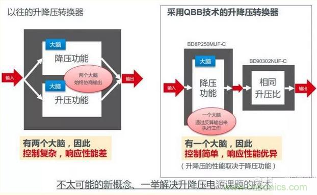 對此羅姆推出了新概念電源電路技術(shù)“Quick Buck Booster(QBB)*)”來解決升降壓型DC/DC轉(zhuǎn)換器的缺點(diǎn)問題。
