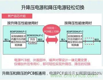 特點(diǎn)2:業(yè)界首創(chuàng)在同一PCB板上輕松切換升降壓和降壓功能