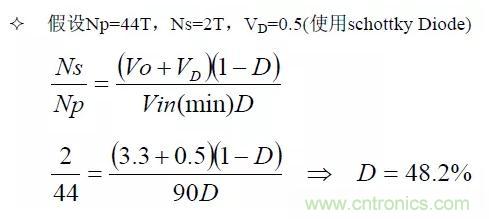 由以下公式可決定Duty cycle ,Duty cycle的設(shè)計一般以50%為基準,Duty cycle若超過50%易導(dǎo)致振蕩的發(fā)生。
