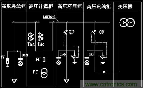 1.高壓進(jìn)線柜;2.高壓出線柜;3.高壓環(huán)網(wǎng)柜;4.高壓計量柜