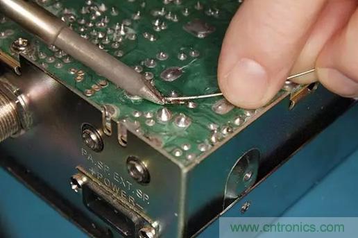 接下來修剪多余的電線至焊點(diǎn)處,并用助焊劑清潔劑對(duì)焊點(diǎn)進(jìn)行清理。