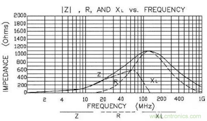 3、磁珠在輻射中間很重要,以前用過(guò)的材料是K5A,K5C,磁珠的阻抗曲線與磁芯大小和尺寸有關(guān)。如圖所示,不同的磁珠對(duì)不同的頻率阻抗曲線不同。但是都是把高頻雜波損耗掉,成了熱量(30MHz-500MHz)。一般MOSFET,輸出二極管,RCD吸收的D,橋堆,Y電容都可以套磁珠來(lái)做測(cè)試。