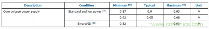 圖1:Arria 10 FPGA內(nèi)核電壓要求 (來(lái)源: Intel®Arria® 10 器件數(shù)據(jù)表)