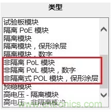 為方便工程師選料,Digi-Key官網(wǎng)上的「電源 - 板安裝」分類(lèi)中的「直流轉(zhuǎn)換器」子分類(lèi)中,在「類(lèi)型」中已將PoL產(chǎn)品列出,方便工程師更快更準(zhǔn)確地選料。
