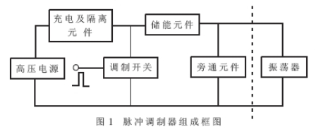 脈沖調(diào)制器主要由調(diào)制開關(guān)、儲(chǔ)能元件、充電及隔離元件、旁通元件等四部分組成,如圖1所示。