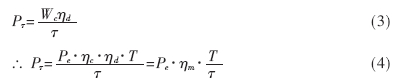 在本系統(tǒng)中,T>>τ,故T-τ≈T,則Wc≈Pe•T•ηc (2)