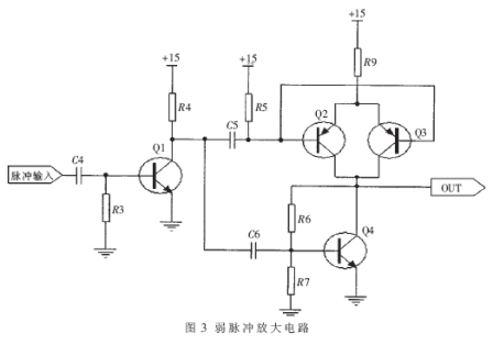 由于數(shù)字電路輸出的TTL電平脈沖信號(hào)驅(qū)動(dòng)能力很弱,無(wú)法直接驅(qū)動(dòng)大功率的MOS管,所以要先對(duì)弱脈沖信號(hào)進(jìn)行放大,才能驅(qū)動(dòng)后面的MOS管。放大電路如圖3所示。