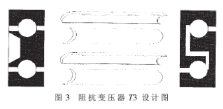 圖2中深色區(qū)域代表覆銅區(qū)域。銅箔管首先穿過磁環(huán)后再穿過兩端的銅膜板并焊接在一起,完成次級線圈。T2的設計基本與T1相似,只是使用同軸線SFF-1.5-1的芯線纏繞的初級線圈圈數(shù)不同而已。