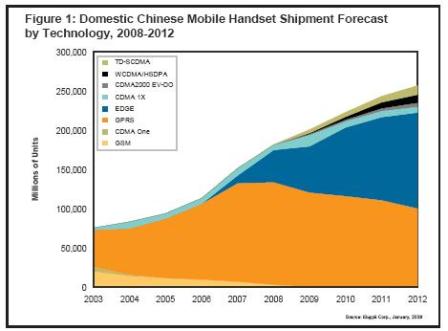 2008年中國(guó)經(jīng)授權(quán)的國(guó)內(nèi)市場(chǎng)出貨量預(yù)計(jì)超過1.8億部。同時(shí),2008年國(guó)內(nèi)灰市將從2007年的5000萬部以上減少到4000萬部。許多灰市供應(yīng)商變成了經(jīng)授權(quán)的品牌廠商,他們的業(yè)務(wù)在三線和四線城市與農(nóng)村市場(chǎng)顯著增長(zhǎng)。