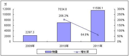 圖1 2009-2011年中國(guó)3G手機(jī)銷量預(yù)測(cè)