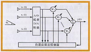 智能天線引入空分多址(SDMA)方式。在相同時隙、相同頻率或相同地址碼的情況下,用戶仍可以根據(jù)信號空間傳播路徑的不同而區(qū)分。實際應(yīng)用中,天線陣多采用均勻線陣或均勻圓陣。智能天線系統(tǒng)由天線陣;波束成形成網(wǎng)絡(luò);自適應(yīng)算法控制三部分組成(見圖1)。