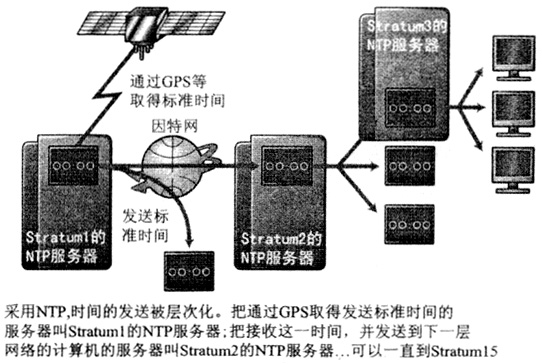 隨著通信網(wǎng)日益IP化,通過IP網(wǎng)絡,使用NTP(NetworkTimeProtocol,網(wǎng)絡時間協(xié)議,RFC1305)修正通信系統(tǒng)內部時間。NTP采用客戶機/服務器模型,NTP服務器端口等待發(fā)送到此端口的UDP報文,響應其他設備作為客戶機向NTP服務器發(fā)送請求,發(fā)送32位整數(shù)表示的當前時間報文、計算精確度和穩(wěn)定度的信息,客戶端接受信息后調整本地時間。