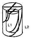 盡管采用較粗的螺旋臂可使四臂螺旋天線輸入端的電抗隨頻率的變化變得較慢,因而能在一定范圍內(nèi)改善頻帶特性,但這種改進受到很大的限制,且付出的代價是增加了天線的重量和加工難度。為了能真正實現(xiàn)寬帶工作,我們以這種天線為基礎(chǔ)設(shè)計出的八臂螺旋天線如圖1所示。這種新型天線由兩付形狀相同,共軸放置,但臂長不同的四臂螺旋天線組成。我們只對其中的一付螺旋天線饋電,另一付天線上的電流則通過電磁耦合得到。