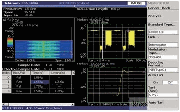 RSA3408A 是滿足這些需求的一種工具,支持多種 RFID 國(guó)際標(biāo)準(zhǔn)、時(shí)間相關(guān)的多域測(cè)量、定制的 RFID 通信體制、多種 RFID 信號(hào)的解調(diào)和符號(hào)解碼。該儀器大大提高了工程效率,同時(shí)縮短了產(chǎn)品投放市場(chǎng)的時(shí)間。不論是滿足政府頻譜規(guī)定、保證標(biāo)簽或閱讀器符合特定的通信標(biāo)準(zhǔn),還是調(diào)試一個(gè)開(kāi)發(fā)中遇到的問(wèn)題,RTSA 都是適合分析閱讀器和標(biāo)簽所發(fā)出的 RFID 信號(hào)的獨(dú)特工具。